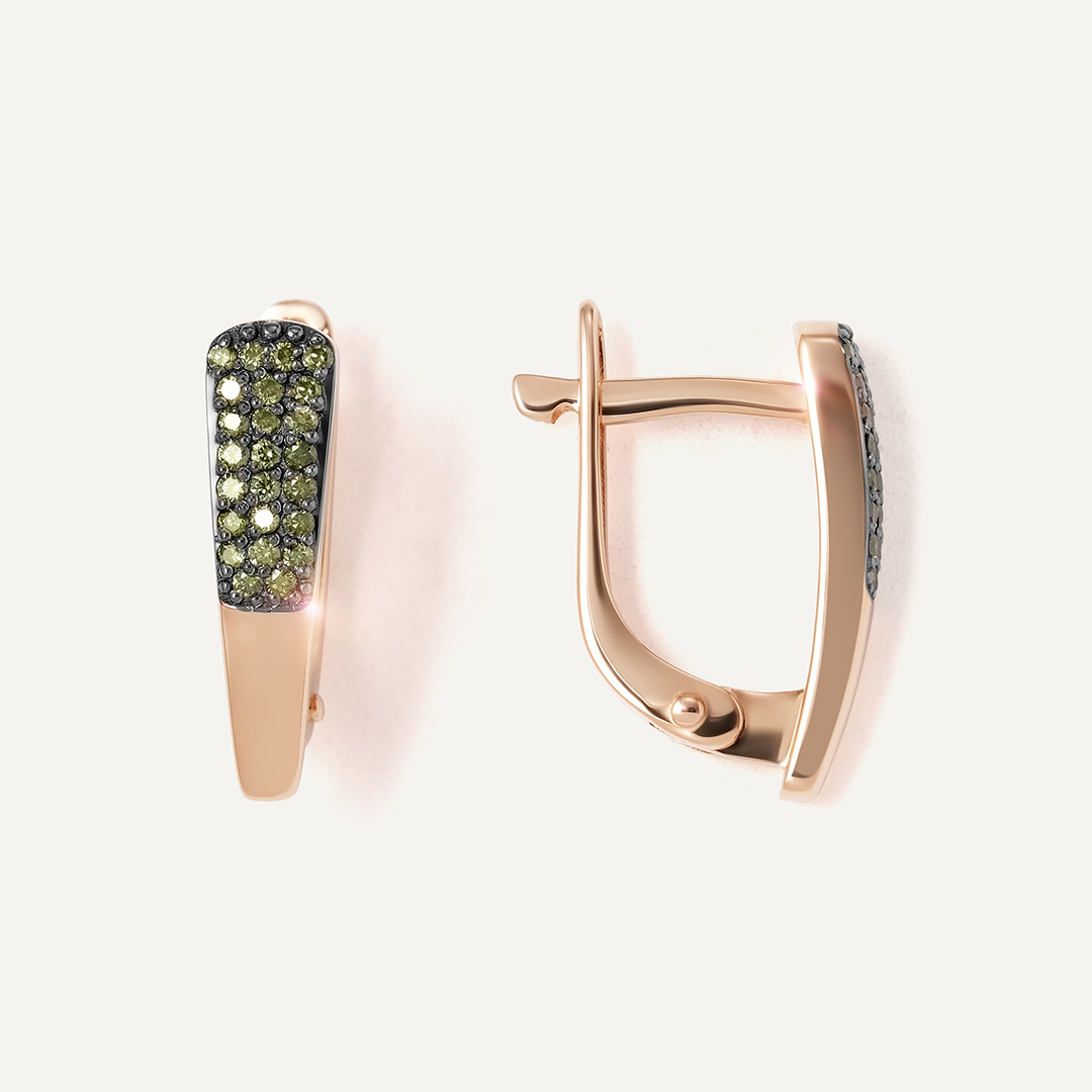 Серьги-пусеты из желтого золота с зелеными бриллиантами