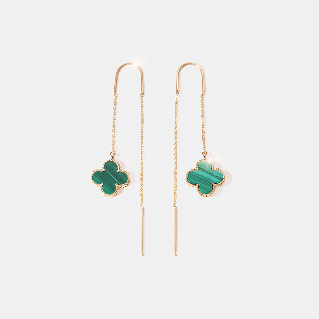 Серьги-протяжки из желтого золота с малахитами "Клевер"