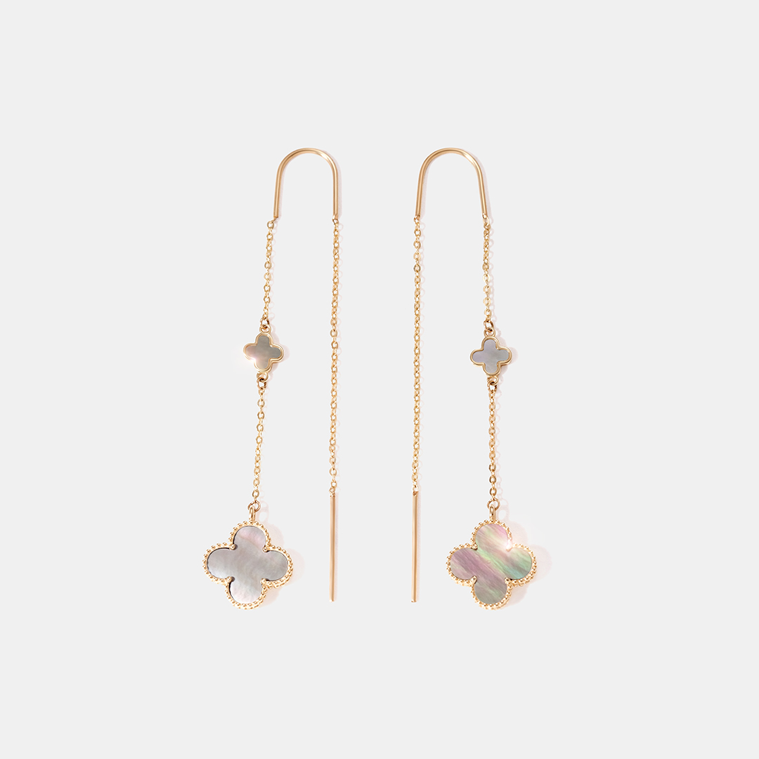 Серьги-протяжки из желтого золота с перламутром "Клевер"