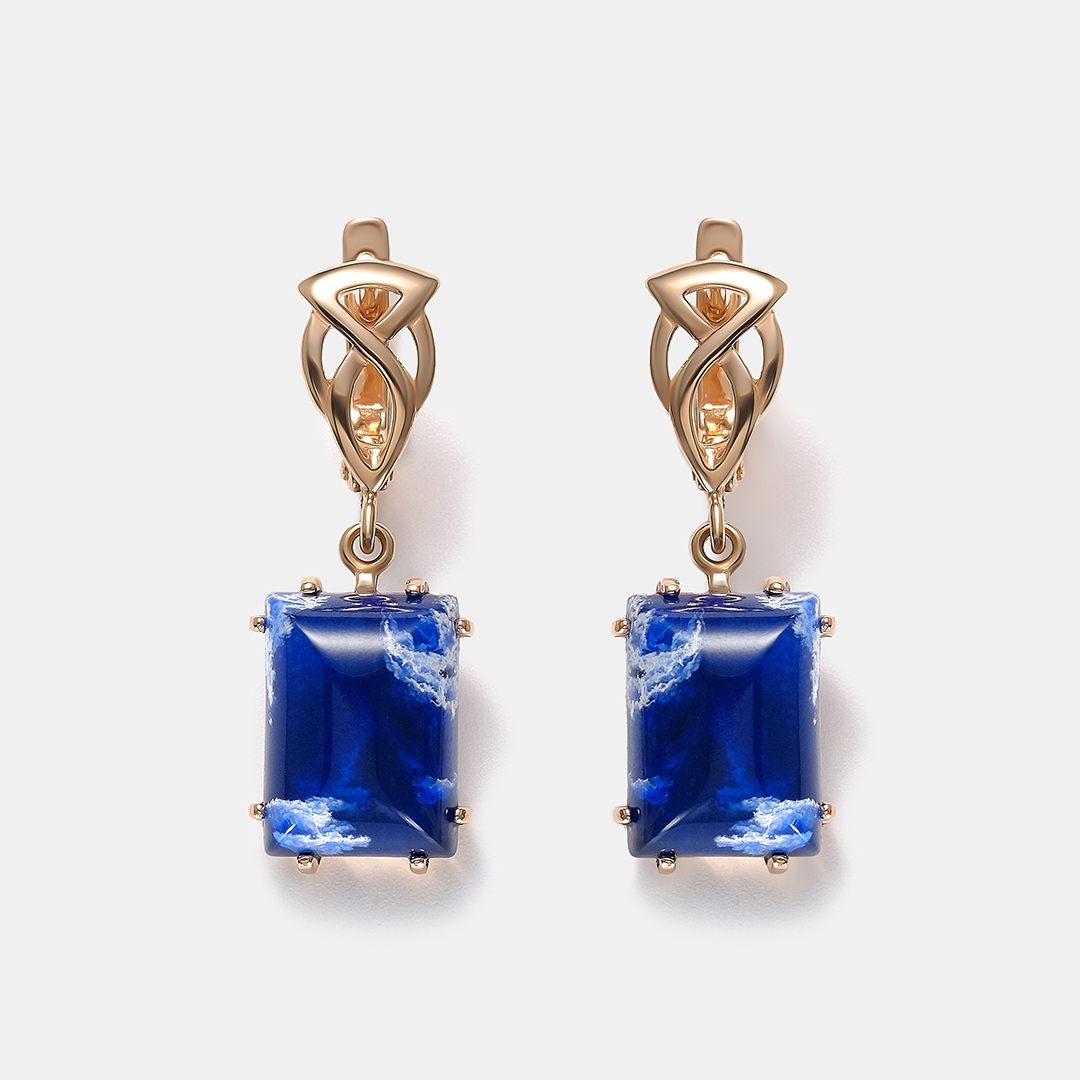 Серебряные серьги с синим янтарем. Материал: серебро 925 пробы; позолота. Вставки: синий янтарь прямоугольник 1,270г - 2шт. Английский замок — один из самых надежных. Его можно встретить во многих современных украшениях, так как он достаточно прост и долговечен. При надевании серьги необходимо вдеть штифт в швензу до характерного щелчка.